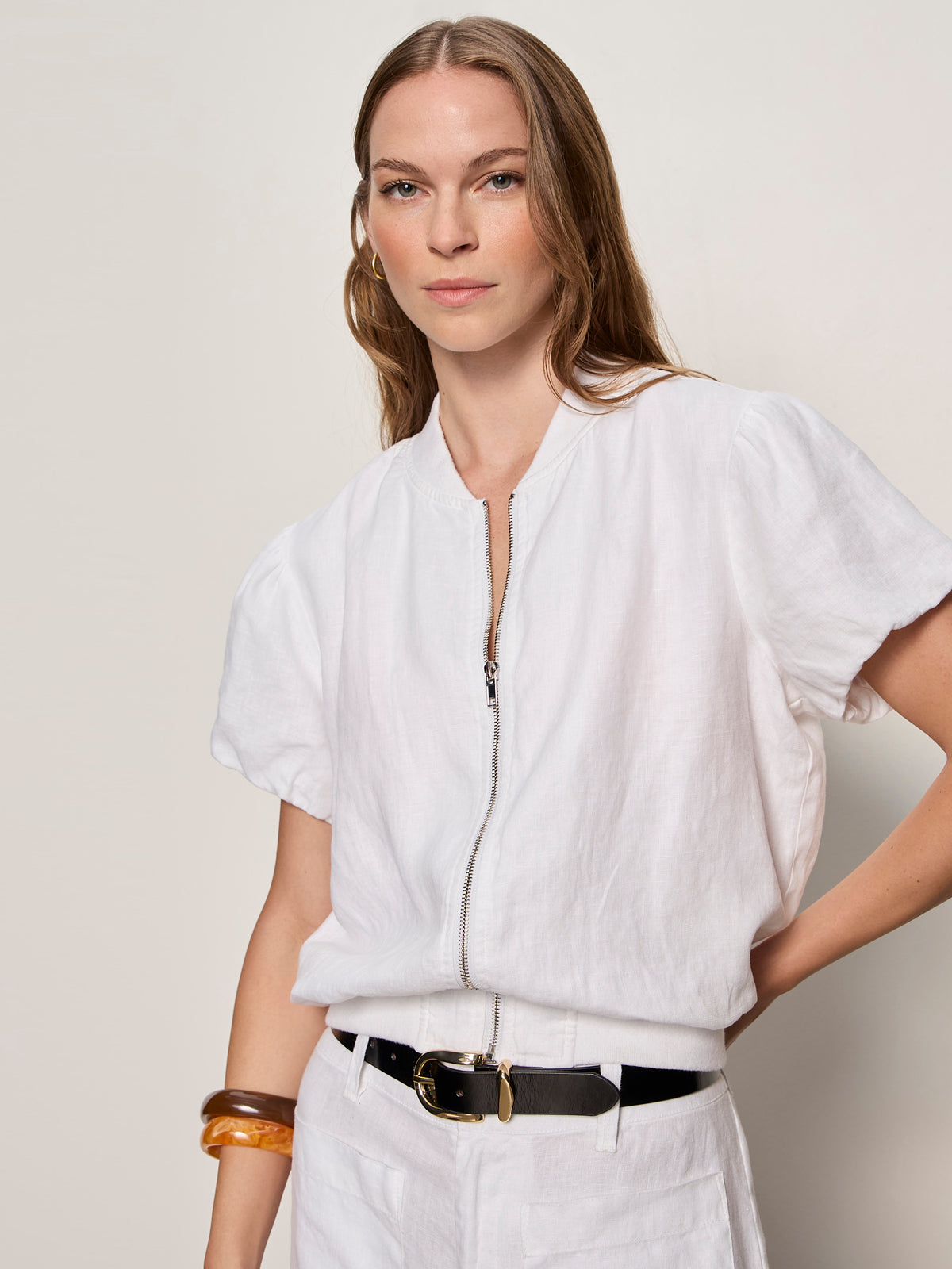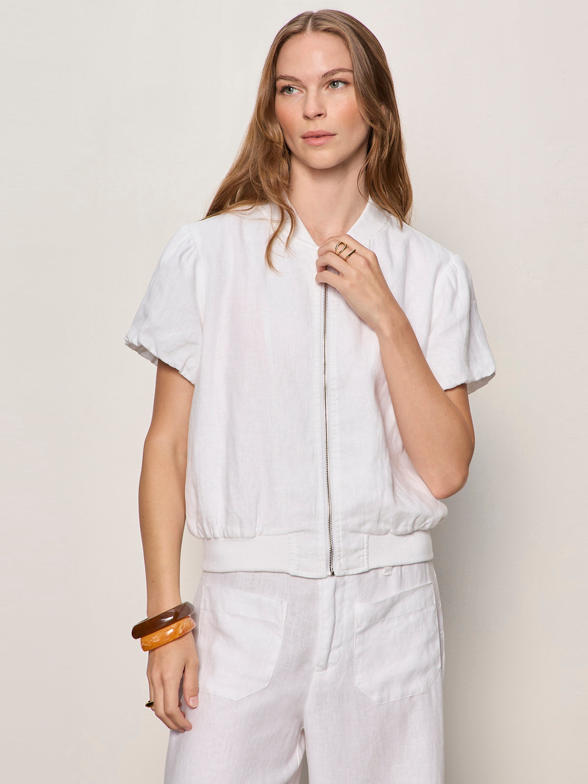 Everly Linen Bomber White