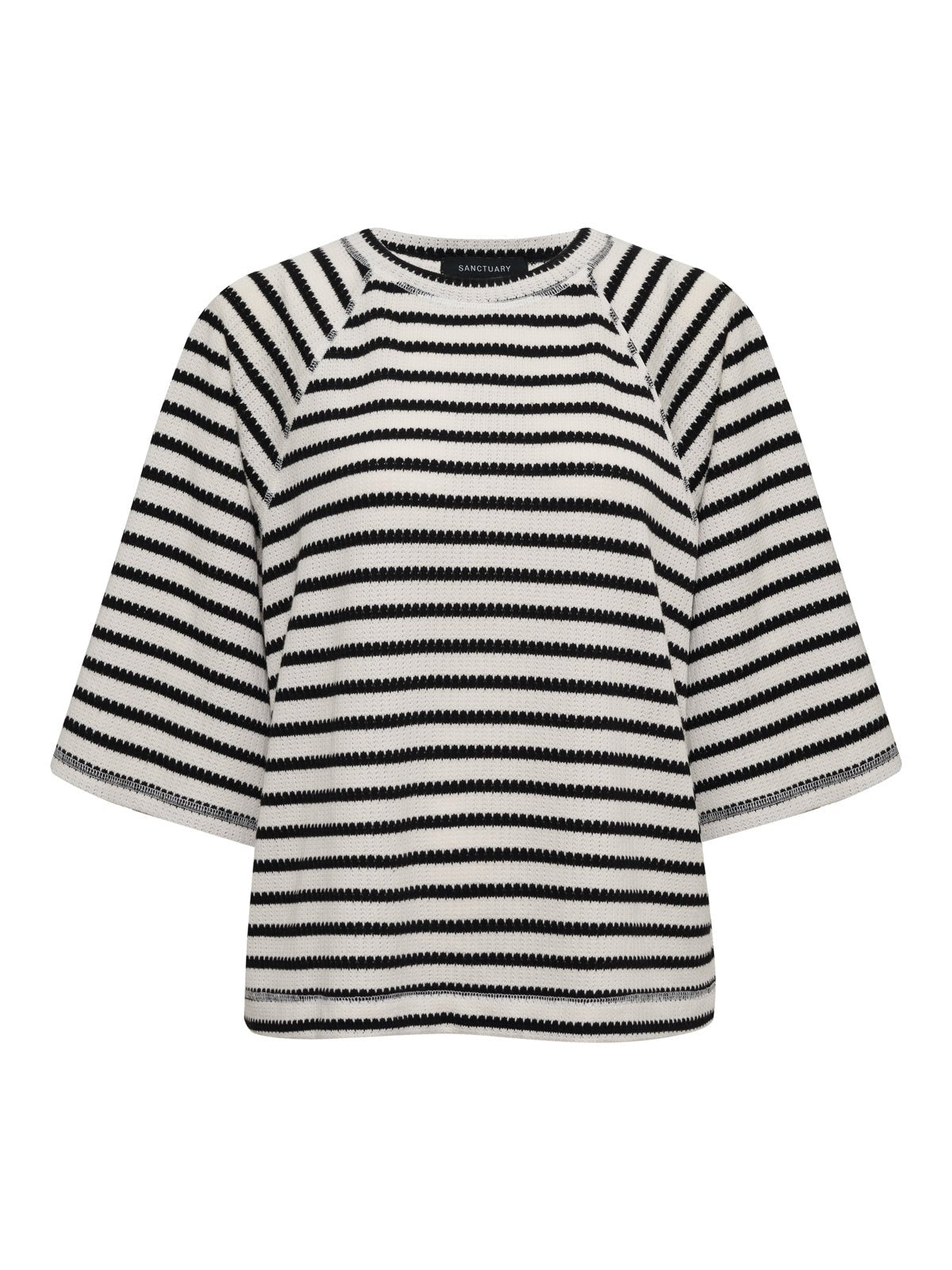 Boxy Raglan Tee Black with Light Oat Stripe